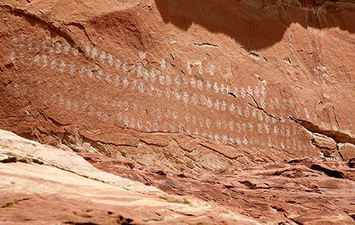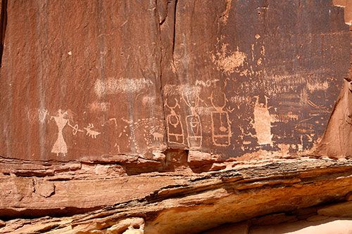 Zurück auf dem Highway bin ich zum Escalante River Trailhead gefahren. An die Wanderung zum Phipps Arch oder die Escalante Natural Bridge war aufgrund des hohen Wasserstands des Escalante River nicht zu denken. Der kurze Hike zur Felsmalerei der 100 Handprints hat sich aber auch gelohnt. Ein paar Meter danben gibt’s es weitere Petroglyphs und eine schöne Aussicht in den Escalante Canyon.