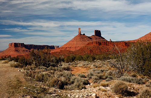 Nach ein paar Meilen auf der SR 128 und einem kurzen Stück Gravel Road waren später die Fisher Towers erreicht.