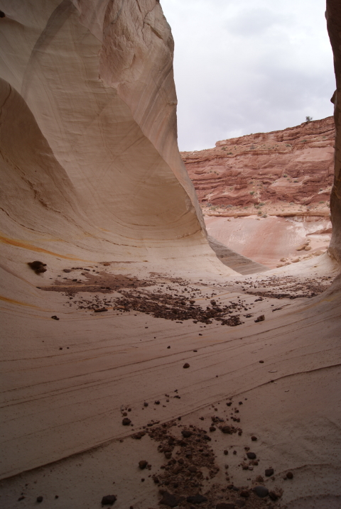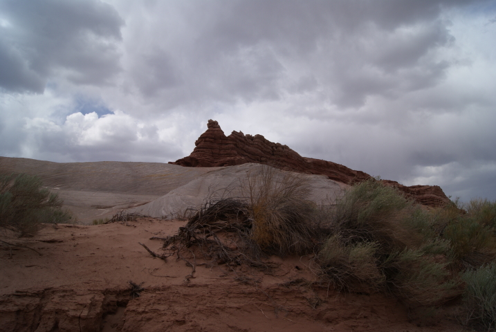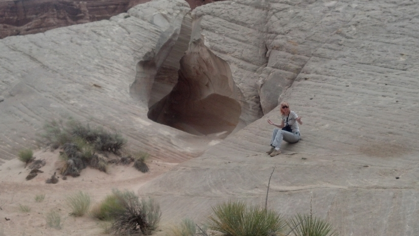 Auf dem Rückweg fängt es zu allem Überfluß noch an zu regnen. Da der Weg durch einen Wash führt, ist das kein gutes Gefühl.. Wir rennen die letzten Meter zu unserem Wagen und haben später reichlich "Sand aus der Paria Area" in den Schuhen. Überall hat sich dieser fiese Sand reingesetzt... die Augen tränen, zwischen den Zähnen knirscht es.. und den Rest wollt Ihr nicht wissen ;-).