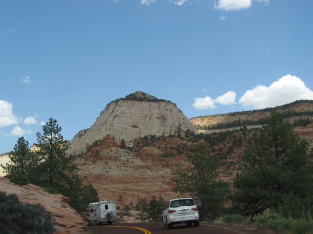 Bleibt also doch nur der Weg durch den Zion. Ich liebe diesen Park zwar, aber man kommt eben nur langsam voran. Nun denn, Dreherle gemacht, wie es Westernlady immer so schön schreibt und Richtung Zion. Wenigstens können wir so das Visitor Center zum "erleichtern" nutzen :-). Im Park ist ansonsten die sprichwörtliche Hölle los. Alle Parkplätze belegt und Riesengewusel überall.