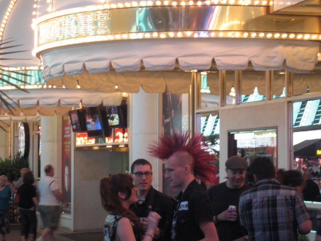 Nun denn, ein erster Bummel über die Fremont Street ist angesagt. Es sind viele viele Punks unterwegs. An diesem Wochenende ist neben Memorial Day auch noch das Punk Rock Bowling-Festival. Ich wusste vorher nichtmal, daß es sowas gibt. Ansonsten laufen einige merkwürdige Gestalten rum, wie man es halt von Downtown gewöhnt ist..