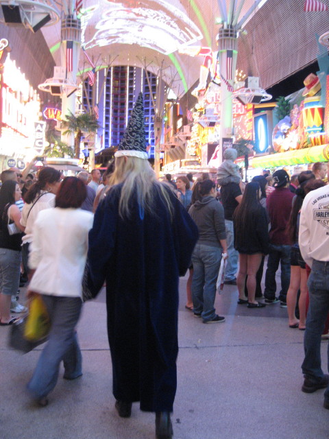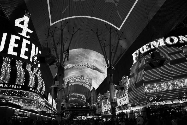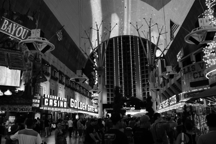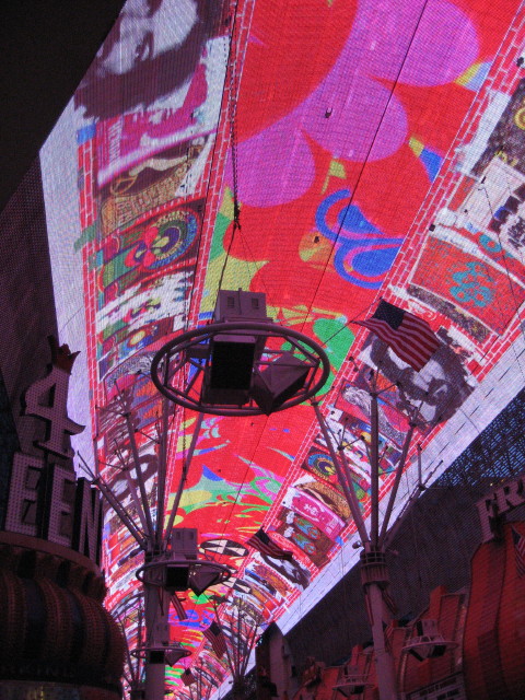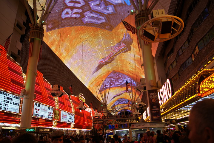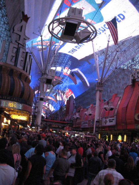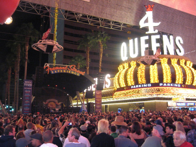 Back on the Fremont ist der Bereich vor der Vince-Neil-Bühne weiträumig abgesperrt. Für die Fußgänger, die vorbei wollen, gibt es nur einen schmalen Weg. Viele Securitiy-Leute versuchen verzweifelt Ordnung ins Chaos zu bringen. Aber es sind so viele Menschen unterwegs, das es sich zeitweise schon unangenehm staut. Ich bin in solchen Momenten immer froh, daß ich etwas größer gewachsen bin..