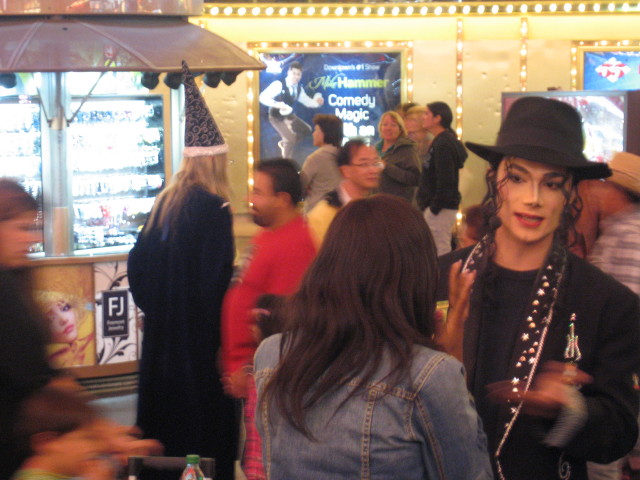Aber egal, als das Nadelöhr überwunden ist, kommen wir an einen Abschnitt, wo sich viele illustre Figuren tummeln. Wieder sehen wir Mitglieder von Kiss, Cpt. Jack Sparrow, Micky Maus... hier ein MJ-Double