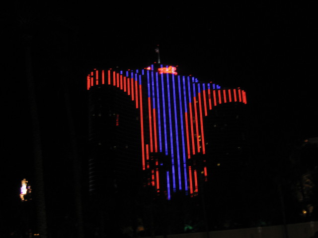 Später starten wir einen erneuten Versuch im Outlet. Als wir an der Bauruine des Fontainbleau vorbeikommen, frag ich mich immer wieder, wer das alles zahlt? Das Teil kostet trotzdem jeden Tag bares Geld und wenn man abends vorbeifährt, sieht man auch, daß innen Licht brennt. Vielleicht aus versicherungstechnischen Gründen..? Statt eines Ferienhaus-Komplexes könnten wir ja auch das Ding kaufen..