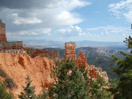 Ankunft am Bryce Canyon 10:30 Uhr Regen und dicke schwarze Wolken heben unsere Stimmung nicht gerade. Erster Gang zum Visitors Center und mal informieren. Mit wenig Zeit wird uns empfohlen bis zum Bryce Point zu fahren, dort zu gucken, dann weiter zum Sunsetpoint und dort den Navajo Trail  durch das Amphitheater laufen. Dauer 1-2 Stunden hatschen. Herbert verpasst erst mal die Einfahrt zum Bryce Point und das ist auch gut so, wie sich später noch herausstellen wird.