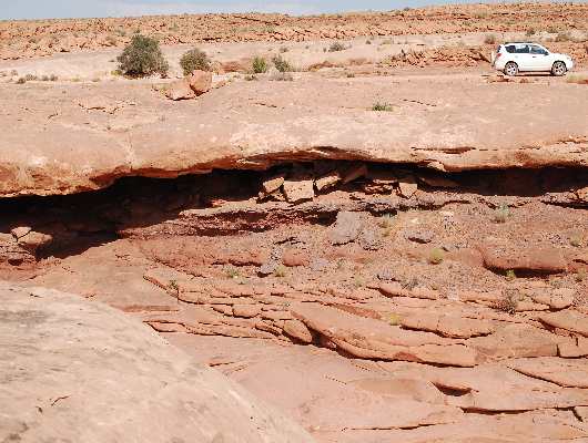 Am Nachmittag brechen wir auf Richtung Pijute Farms. Eine Dirtroad, die nach der Karte bis zum San Juan River Arm führt. Nach Grandpa Keith ist die Straße gut und wir bräuchten ca. 1,5 Stunden hin. Dort gäbe es auch einen Wasserfall aber man/frau müsste durch Büsche laufen und dort sind Schlangen. Na Mahlzeit. Opa erzählt noch, dass dort versucht wurde Schafe zu halten und diese seien aber von den Schlangen getötet worden. Justin bewaffnet sich mit Revolver um uns vor den Schlangen zu bewahren. Noch mal Mahlzeit. Er war dort auch noch nie, ist für ihn auch eine Entdeckungstour.