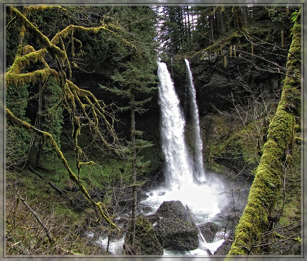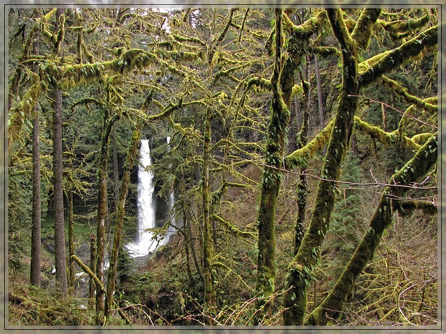 Man tut dem Park aber ein wenig Unrecht wenn man ihn nur auf die Wasserfaelle reduziert. Diese sind sicherlich spektakulaer, aber auch die Vegetation ist interessant. Es ist eine der wenigen Stellen in den Kaskaden, die nie eingeschlagen wurden und wo noch immer der ursruengliche Urwald zu finden ist. Die skurrilen bemoosten Baeume bieten einen wunderbaren Rahmen fuer die Wasserfaelle.