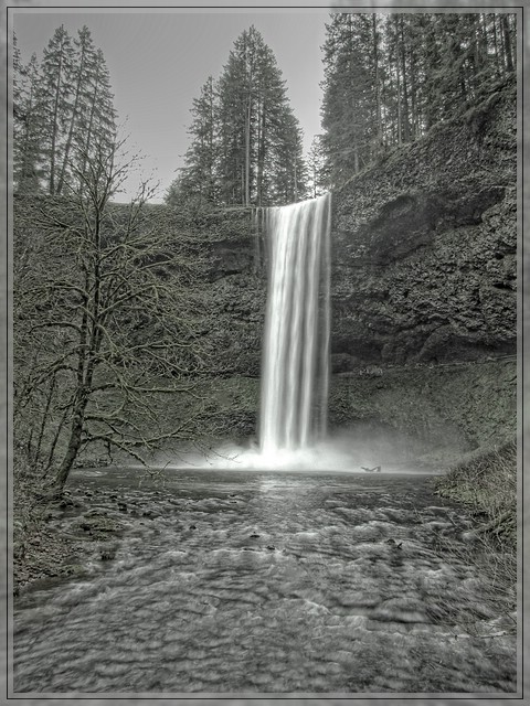 Mit den flachen breiten Lower North Falls geht dann die Kette der North - Faelle zuende und an dem Zusammenfluss von der North Fork und der South Fork (muss dabei immer an J.R. denken) des Silver Creek geht es dann wieder flussaufwaerts entlang des South Fork.