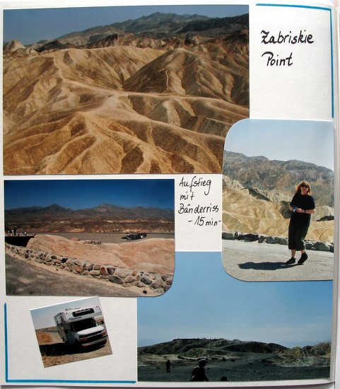 Wir fuhren auf den Parkplatz am Zabriskie Point und „wanderten“ den Berg zur Aussichtsplattform hinauf! Unglaublich, ich brauchte eine viertel Stunde und einige Pausen für den kurzen Weg, aber die Mühe lohnte sich, der Ausblick war toll!