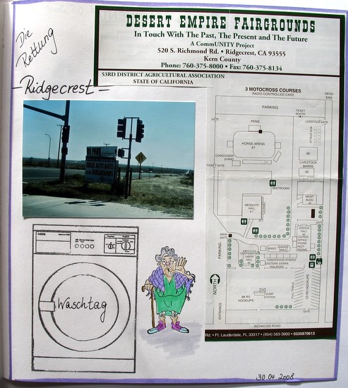 Kurz vor der Hoffnungslosigkeit fuhren wir in Ridgecrest ein und entdeckten einen Self- Pay- Campground! Deutlich erkennbar waren hier nur Dauercamper, und jede Menge freie Plätze. So stellten wir uns in die Nähe der anderen Wohnmobile, bezahlten unsere Gebühr und schlossen die Kabel an. Der Wind pfiff uns um die Ohren, das WoMo schaukelte hin und her, aber wir waren froh, einen CG gefunden zu haben.