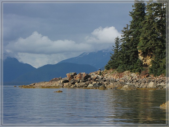 Julie kennt ihre Familie und Brad hat sie kennengelernt, daher war beiden klar: spaetestens drei, vier Tage nach der Hochzeit muessen wir fliehen oder es kommt zu ernsthaften Familiendramen und so wurde eine zweitaegige Kajaktour in die Berners Bay im Norden Juneaus geplant. Da das noch nicht die Hochzeitsreise sein sollte (die fuehrte die beiden drei Monate spaeter nach Machu Picchu) durften ich und noch jemand anders die traute Zweisamkeit stoeren. Wir wurden eingeladen mitzukommen und da habe ich natuerlich auch nicht nein gesagt.