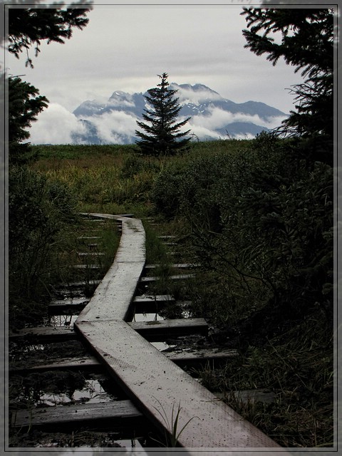 Die Bretter im Sumpf erinnern mich an den Alaka'i Swamp Trail, nur der Berg im Hintergrund passt nicht dazu :wink: