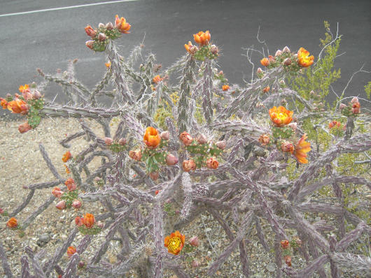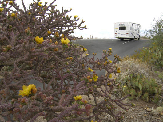 Einige Meilen später verlassen wir New Mexico und sind nun in Arizona. Von der I10 fahren wir am Exit 279 ab zum „Saguaro Park“ (East). Es ist zwar nichts angeschrieben, aber schließlich finden wir ihn doch. Bereits auf der ganzen Strecke dorthin sehen wir wunderbar blühende Kakteen aller Arten.