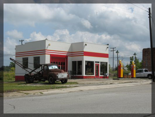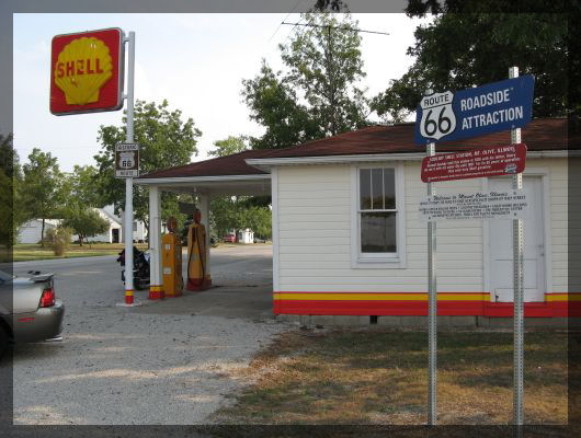Kurz hinter Wilmington wird die Straße zur Frontage Road und verläuft im Folgenden direkt neben der Autobahn. Wir kommen aber durch alle kleinen Ortschaften, die von der Autobahn umfahren werden. Dort sehen wir schöne alte Tankstellen und teilweise neben der Straße Stücke einer noch älteren Streckenführung, die langsam vom Gras überwuchert werden. In Lexington wird ein solches Stück von örtlichen Enthusiasten gepflegt. An dieser "Memory Lane" kann man zu Fuß über den alten Asphalt spazieren gehen und nachgemachte alte Werbeschilder sowie Burma-Shave-Tafeln bewundern. Diese Tafeln waren als Werbung für Rasierschaum gedacht. Jeweils fünf Tafeln der am Rand der Straße aufgestellten Tafeln ergaben zusammen einen als Vers abgefassten Werbespruch.