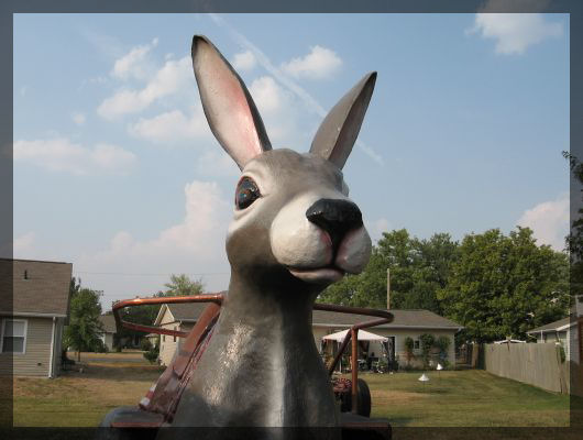 Weiter geht es durch ebenes Farmland entlang der I 55 in Richtung Südwesten. Neben weiteren alten Tankstellen kommen wir noch an einer relativ verrückten Sehenswürdigkeit vorbei: Eine kleine Kopie des bekannten Jackrabbit Trading Post in Arizona. Auch hier stehen jede Menge Hasen herum, die Werbetafel erinnert ebenfalls stark an des große Vorbild, allerdings lautet der Werbespruch "Hare It Is" anstelle von "Here It Is"…