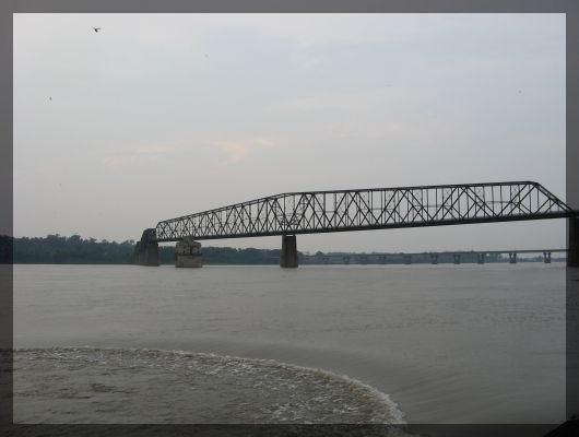 Wir fahren bis zur alten Chain of Rocks Bridge kurz hinter Granite City, eine Brücke mit eingebauten "Knick". Früher führte die Route 66 über diese Brücke, allerdings wurde die Brücke 1967 geschlossen und ist heute nur für Fußgänger und Fahrradfahrer geöffnet. Während wir über die Brücke nach Missouri und wieder zurück spazieren fließt der breite Missisippi träge unter unseren Füßen dahin. Nach St. Louis wollen wir erst morgen, also suchen wir uns in der Nähe der Brücke ein Motel. Der Mensch an der Rezeption hat noch nie so etwas wie deutsche Ausweise oder Reisepässe gesehen und verwechselt fast Dirks Geburtsort mit seinem Namen.