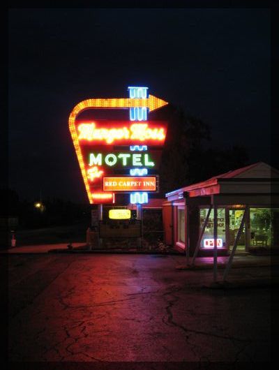 Die Gravel-Road führt uns glücklicherweise bald wieder auf die Route 66, so dass wir kurz darauf in Lebanon sind, wo wir uns ein Zimmer im Munger Moss Motel nehmen. Das ist ein richtig schönes altes Vintage Motel mit riesigem Neonschild. Die Begrüßung von Ramona, der Besitzerin, ist herzlich. Unser Zimmer ist sehr gepflegt, an der Wand hängen Route 66-Bilder.