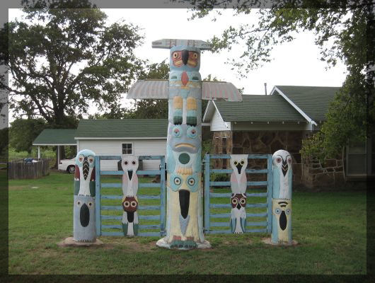 In Oklahoma kommen wir an der "Buffalo Ranch" vorbei, Zunächst denken wir, das Lokal heißt bloß so, beim genauen Hinschauen sehen wir aber, dass auf einer Wiese neben dem Gebäude einige echte Bisons weiden. Wir halten an und beobachten einige Zeit die majestätischen und gemütlichen Tiere. In der Ortschaft Foyil, knapp 25 Kilometer später, verlassen wir die Route 66 und fahren zum sechs Kilometer entfernten Totem Pole Park. Dieser Park ist das Lebenswerk von Ed Galloway, der hier von seiner Pensionierung bis zu seinem Tod 23 Jahre später die verrücktesten Totempfähle gebaut hat. Die Pfähle sind zwar von indianischer  Kunst inspiriert, heben sich von dieser aber durch den naiven Stil und die Bemalung in Pastellfarben ab.