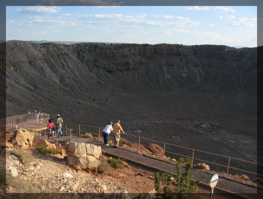 Jackrabbit Trading Post in Joseph CityUngefähr 40 km hinter Joseph City kommen wir durch Winslow, noch mal 30 km später biegen wir Richtung Meteor Crater ab. Dieser Krater entstand, als vor 50000 Jahren ein etwa 50 Meter großer Meteorit einschlug. Nachdem der Krater im 19ten Jahrhundert von weißen Siedlern entdeckt worden war, hielten ihn die Wissenschaftler lange Jahre für das Resultat eines Vulkanausbruchs. Erst 1960 konnte durch Eugene Shoemaker nachgewiesen werden, wie der Krater tatsächlich entstand, übrigens war dies der erste Meteoritenkrater auf der Erde überhaupt, bei dem dieser Nachweis gelang.