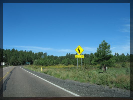US 180 kurz hinter FlagstaffAuch die Umgebung des Grand Canyons stimmt nicht mit unseren Erwartungen überein, denn hier fahren wir wieder durch dichten Wald. Als wir den Canyon erreichen, müssen wir erstmal um einen Parkplatz kämpfen. Nachdem uns im mittleren Westen so gut wie keine anderen Touristen über den Weg gelaufen sind, sind wir geschockt, wie viel hier los ist. Es sind auch auffällig viele Deutsche unterwegs, die zum Teil alle negativen Klischees erfüllen: Eine Frau beklagt sich am Mather Point lautstark ihrem Begleiter gegenüber, dass ihr zu viel los sei und es hier sowieso stinken würde. Ein anderer Held plant mit seiner Freundin einen Trip ins Innere des Canyons und will mit nur einem halben Liter Wasser loszuziehen, um so Gewicht zu sparen.