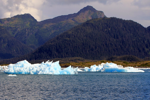 Womit wir nun endlich zu den Eiswürfeln kommen. Beim Anblick des 5 Kilometer!!! breiten und 50 - 80 Meter hohen Columbia Gletschers und dem davor schwimmenden Eisfeld meinte Steffi ganz trocken: Das sind aber viele Eiswürfel!
