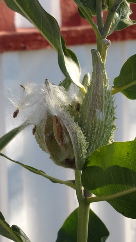 Die Pflanze ist eine Asclepia syriaca, eine Seidenpflanze. Von ihr ernährt sich übrigens die Raupe des bekannten Monarchfalters, der in den USA (über mehrere Generationen hinweg) so extrem lange Wanderungen bis hinab in sein Winterquartier in Mexiko unternimmt.