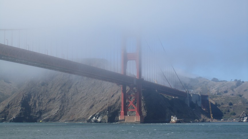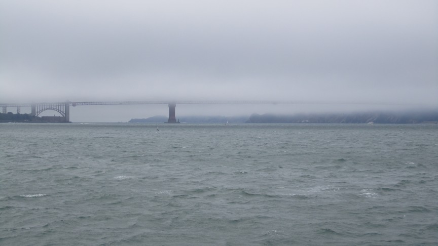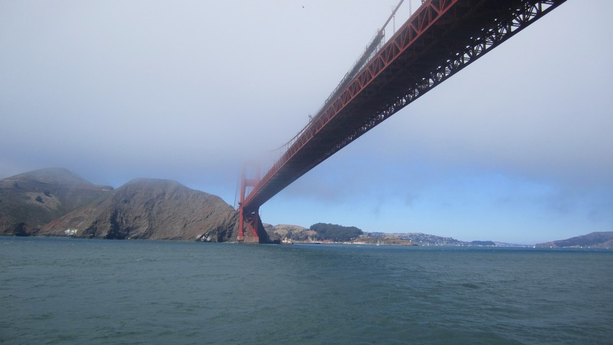Es gefiel uns jetzt schon ausnehmend gut hier, als weiteren Programmpunkt hatten wir uns eine Schiffsrundfahrt vorgenommen. Tickets bei der „Red&White-Fleet“ gekauft, es gab auch ne „Blue&Gold-Fleet“ aber die tun sich nix preislich denk ich mal. Nach kurzer Wartezeit gings auch schon aufs Schiff und wir fuhren ab. Da ich selbstverständlich in keinster Weise drüber nachgedacht hatte, das es vielleicht ein wenig frisch draussen auf dem Meer sein könnte, fröstelte es mich in meinem T-shirt nicht unerheblich mit zunehmender Fahrt. Die Brücke war heute zumindest nicht komplett im Nebel so daß wir immerhin die folgenden Aussichten genießen konnten :