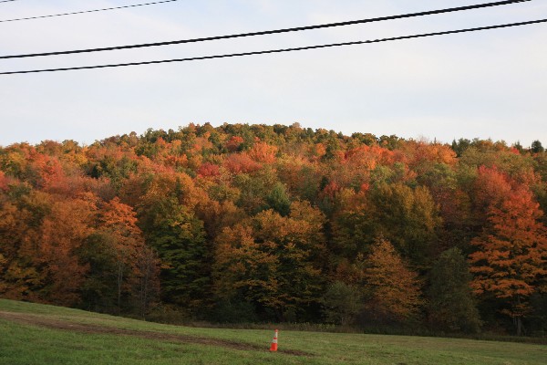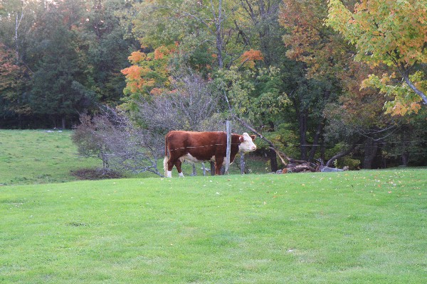 Langsam bekomm ich Hunger und wir fahren zurück nach Wilmington zu Tommys Pizza und essen die 16“ Pizza auf. Auf der Route heute haben wir noch einige Brücken gefunden, die so nicht ausgeschildert waren, aber dank der schlechten Wetters war der Tag doch eigentlich recht ereignislos. Obwohl, wir haben zum ersten Mal tanken müssen und dank alles Horrorszenarien die ich vorher gelesen hatte, erwartete ich das Schlimmste, aber das Gegenteil trat ein, Kreditkarte rein, eventuell Pin eingeben (differiert) Karte raus, Sorte wählen (regular) und los geht das Zapfen. Also einfacher geht’s wirklich nicht mehr. Noch ein Halt bei Shaws und Obst für 20 $ gekauft, ist nicht soviel wie man erwarten würde. Wir fahren zurück zur Farm und trinken einen Tee und ich helfe Patty mit ihrem PC. Ich frage Sie, ob sie auch schon das Wahlfieber gepackt hat, und sie erklärt mir, dass sie als Kapitalist nur McCain wählen kann, weil Herr Obama eher sozialistisch orientiert ist, und alle Unternehmer in den USA sich dort benachteiligt sehen. Der Himmel hört endlich auf zu weinen und wir gehen noch eine kleine Runde die Füße vertreten. Das Sugarhouse (worin die Innkeeper ihren Maple sirup kochen) ist in der Nähe und auch meine geliebten bunten Blätter leuchten für uns in den wenigen Sonnenstrahlen.