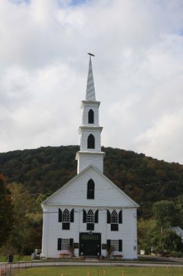 Wir finden sie auch schnell und schießen das obligatorische Foto. In Battleboro ist sonst nix los und wir fahren nach Bellowfalls. Am Bahnhof ist der Green Mountain Flyer nicht da und wir fahren weiter nach Newfane. Ein kleines typisches Vermonter Dorf. Weiße Kirchen und Hinweise auf das bevorstehende Erntefest.