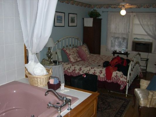 Mit großem Jaccuzzi, den wir auch nutzen werden. Ich packe die Koffer um und bringe den kaputten zu June, der Innkeeperin. Ich bitte Sie, den Koffer zu entsorgen, aber sie freut sich drüber und will ihn noch für die Halloween-Dekoration benutzen. Ich freu mich, dass er weg ist und sie auch. Wir schauen noch TV und essen Macintosh-Äpfel.