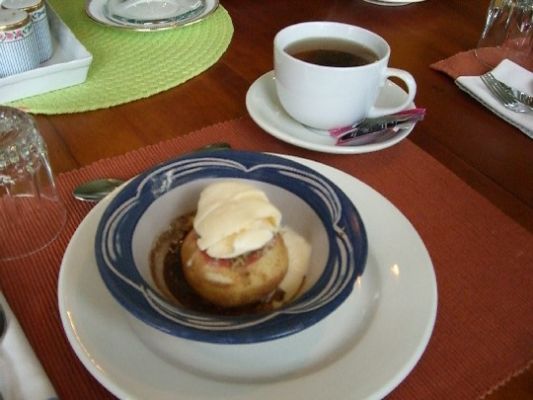 Es gab zum Frühstück den auf der Homepage schon angepriesenen gebackenen Apfel mit Nüssen, Rosinen und einer Kugel Vanilleeis (hatte ich bis jetzt auch noch nicht zum Frühstück). War aber gut.