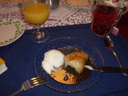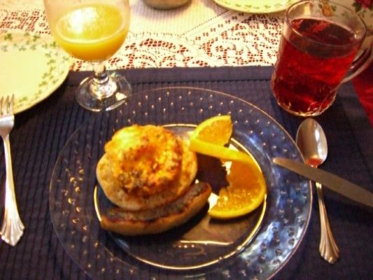 Wir trinken noch einen Tee im Sunroom und essen ein bisschen Obst. Aus dem Fenster sehen wir Smoky auf unserem Sonata, das ist doch ein Foto wert.