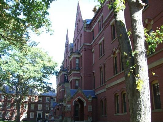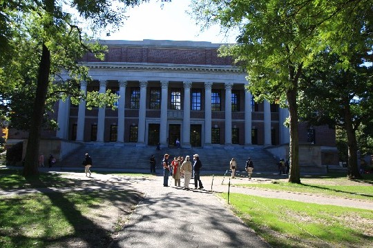 Der Park ist auf Grund des schönen Wetters überfüllt. Wir kaufen ein Tagesticket für die T (18$) und fahren bis Harvard. Am Harvard Square angekommen sieht man schon die altehrwürdigen Mauern. Wir laufen über den Campus und sind, wie schon in Yale, von jeder Menge Touris umgeben. Der Campus ist ähnlich aufgebaut, wie in Yale. Alte Häuser umrahmen eine Grünfläche, Efeu an einigen Wänden und Wege führen kreuz und quer zwischen den Häuser hin und her. Die Widener Library ist die Universitätsbibliothek, mit den meisten Bänden weltweit. Ein Gebäude was eher an ein Gericht oder so erinnert. Etliche Treppenstufen führen zum Eingang der hinter Säule nur zu erahnen ist.