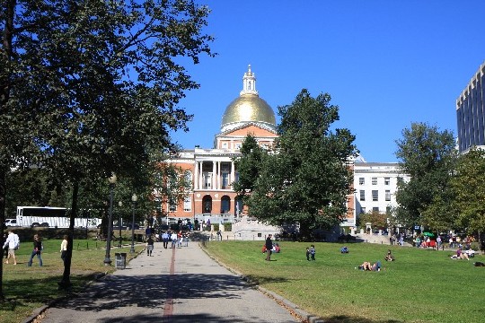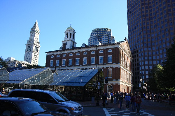 Wir gehen vorbei an der Massachusetts Hall, mit Ihrer goldenen Kuppel immer dem Faden entlang. Das ist der schnellste Weg Boston zu sehen. Vorbei an dem Old State House und Faneuil Hall.