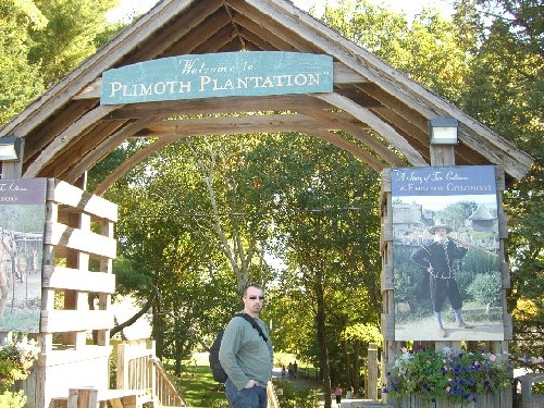 Heute Morgen gibt’s scrambled eggs, sausages, Muffins, homemade bread, und homemade jam. Alles sehr gut, heute Morgen haben wir ein Pärchen aus Florida und eine ältere Lady auf Rundreise am Frühstückstisch. Es gibt wieder Smalltalk über Gott und die Welt. Wie verabschieden uns von Joan, hinterlassen einen Eintrag im Gästebuch und machen uns auf den Weg zur Plimoth Plantation. Boston wird auf der Interstate umfahren und bis Plymouth ist es auch nicht mehr weit. Der Parkplatz ist nicht übermäßig gefüllt, so dass wir halten und zum Eingang gehen. Für 28 $ p.P. kann man die Plantation und die Mayflower II besichtigen.