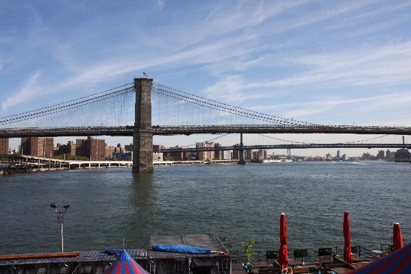 Heute Morgen ist zum Ersten Mal Selbstverpflegung angesagt. Also schiebe ich das Baguette in Scheiben in den Toaster, denn unser tolles Zimmer hat eine vollständig ausgestattete Küche. Leider schmeckt es wie Zwieback und schon wir einem der French Toast irgendwie sympathischer. Auch die Jelly ist nur süß. Gott sei Dank haben wir noch die Scones von Eurnie und den Muffin von Bill. Das ist lecker und wir starten gestärkt Richtung Brooklyn Bridge. Zuerst in einen Drugstore, Erkältungszeug kaufen. Dann fahren wir mit der Linie 6 ab der 96th Street bis Endstation. Wir sehen schon die Brücke, wollen aber einen besseren Winkel fürs Foto und laufen bis zum Pier 17.