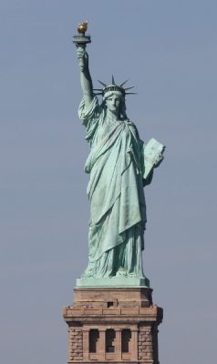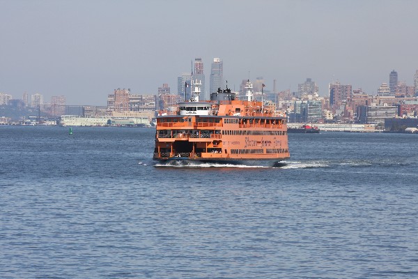Da ist der Bulle, wo sich eine Schulklasse und etliche Asiaten um ein schönes Bild schlagen. Wir warten, machen ein Foto und gehen zur Staten Island Fähre. Gerade fährt eine raus, daher müssen wir 30 min. warten. In der Haupthalle wird es langsam voller und wir werden Richtung Einstieg gelotst. Auf dem oberen Deck erhoffe ich mir die direkte Sicht auf die Lady Liberty und richtig. Genau vor unserer Nase hält sie Buch und Fackel in die Höhe. Das perfekte Motiv.