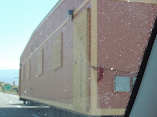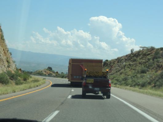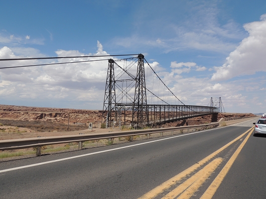 Im Forum sah ich diese Brücke und fand sie ganz interessant und so passte es das wir in einen kleinen Stau kamen der uns ausbremste. So konnten wir in Ruhe ein Bild knipsen. Grund des kleinen Staus, war ein Schwertransporter, der alleine über die Brücke fahren musste, die über den kleinen Colorado River führte.