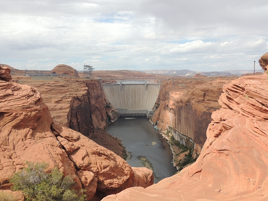 Am Eingang von Page konnte man schon den Glenn Dam sehen und ich erinnerte mich in einem Reisebericht von einen Viewpoint gelesen zu haben. Schwer zu finden war er nicht, da ich die ungefähre Wegbeschreibung im Kopf hatte.....Das sind so kleine Dinge wo man merkt , das es sich gelohnt hat, viele Reiseberichte zu lesen... weil in keinem Reiseführer bekommt man das so vermittelt...:D:D:D
