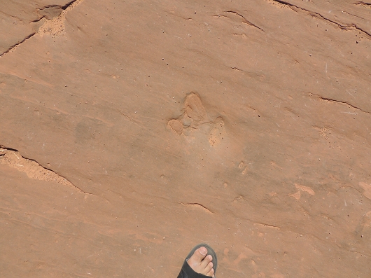 Soll wohl der Fußabdruck von einem Dino sein.....das untere ist mein Fuß   ;););););) nicht das ihr da was verwechselt :P:P