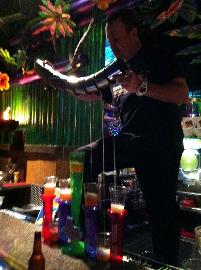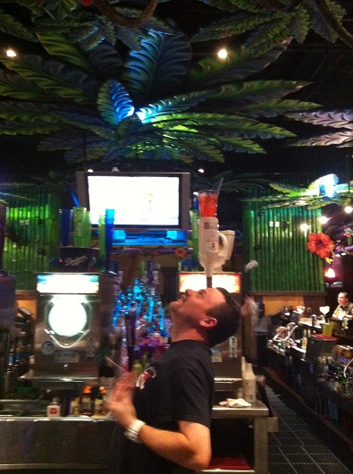 Zum Schluss schlenderten wir noch durchs TI und wollten noch an die Partybar "KAHUNAVILLE" einen Cocktail zu uns nehmen....als wir die Bar betreteten, wurden wir von anderen Gästen an die Bar gewunken, denn sie meinten es soll gleich eine Bartendershow starten, für mich natürlich besonders interessant.....