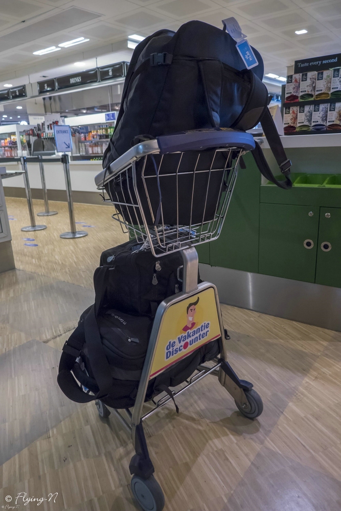 Fast hat er das geschafft, die Uhr zeigt 15:50 bei der Zwischenlandung in Amsterdam. Als Snack gibt es einen Wrap, Wasser und ein Getränk. Von der ursprünglichen Umsteigezeit von 2:20 bleiben uns in Schiphol noch 1:55, was aber sehr bequem reicht. Wir steigen gerne in Amsterdam um, alles ist großzügig und modern, es gibt Trolleys für das Handgepäck,