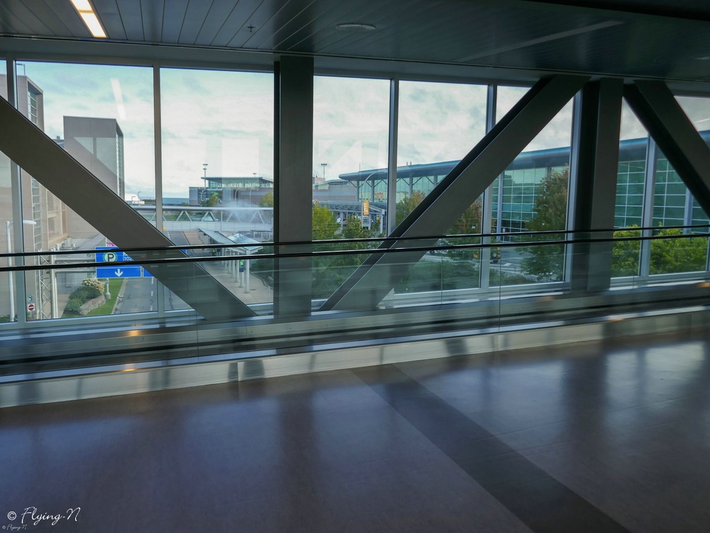 was ich sehr praktisch finde und sonst noch nirgends gesehen habe. Für Menschen mit knappen Anschlüssen gibt es Express-Lanes. Wir haben es nicht besonders eilig, essen ein Omelette bzw. ein Sandwich und marschieren dann zum Abflug-Gate Richtung Toronto.