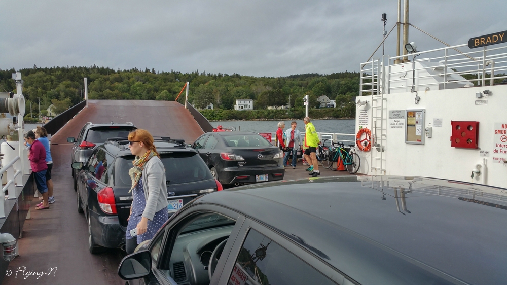 Um 18:05 legt die Fähre ab, die Überfahrt dauert 75 Minuten bis Wood Islands, PE. Bezahlen muss man übrigens nichts dafür! Eine lustige Regelung, wie ich finde: Man bezahlt immer beim Verlassen der Insel. Das kostet mit der Fähre $72, über die Confederation Bridge, die wir morgen nehmen werden, nur $46,50! Selbstverständlich haben die Schwaben das genau deswegen so geplant…