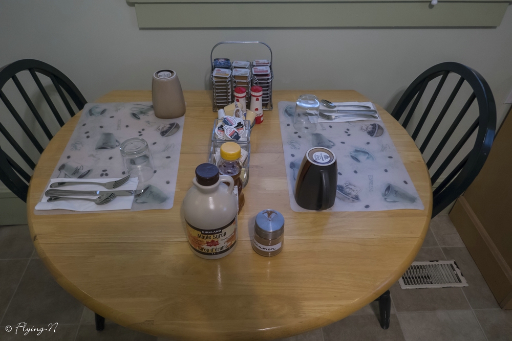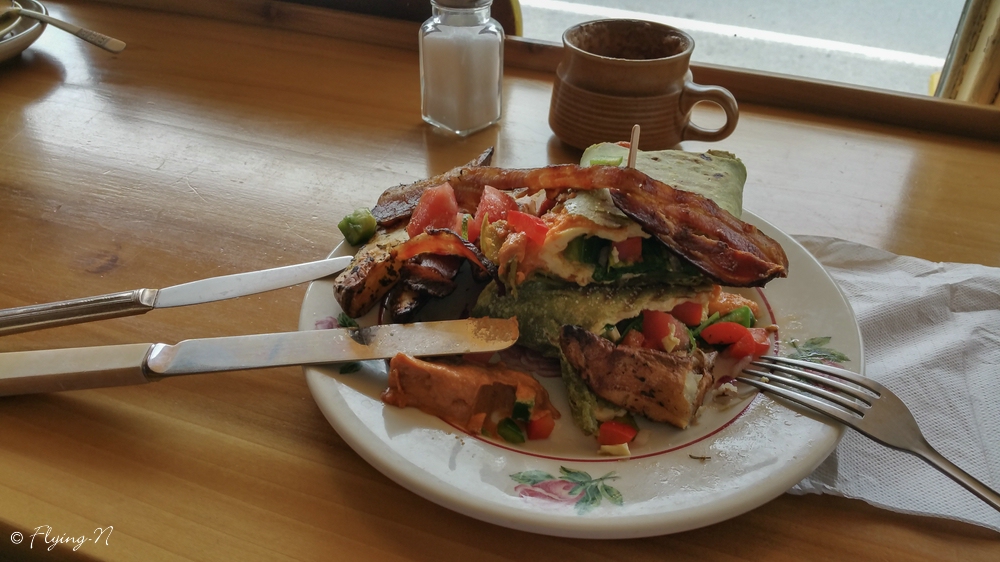 Zum Frühstück brutzeln uns die Gastgeber Heather und Wayne in der Küche, wo wir Platz nehmen, lecker French Toast, Bacon & Eggs, dazu gibt es Jogurt, Tee und Kaffee. Und natürlich die obligatorische Smalltalk Konversation, wo wart ihr, wo geht ihr hin, wie findet ihr Trump, usw. Ich erwähne, dass wir heute unseren 25. Hochzeitstag haben und für später eine Whale Watching Tour gebucht haben.