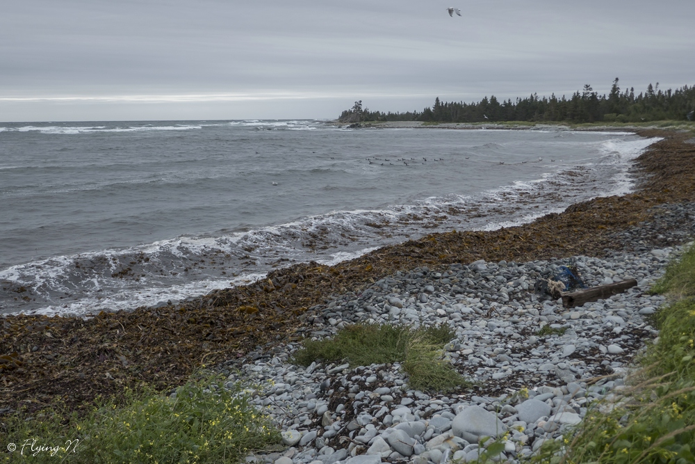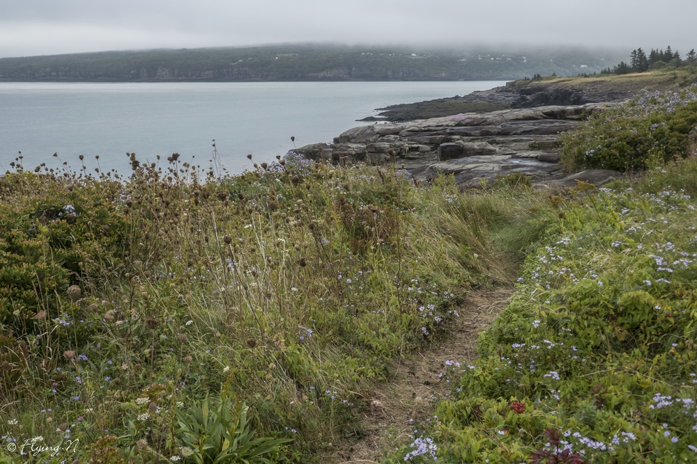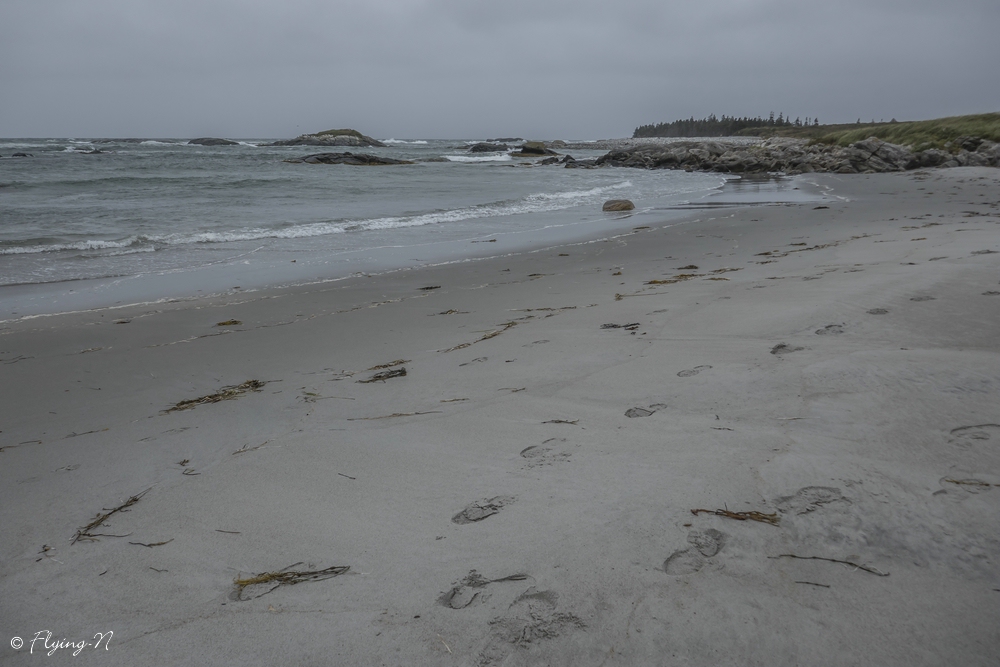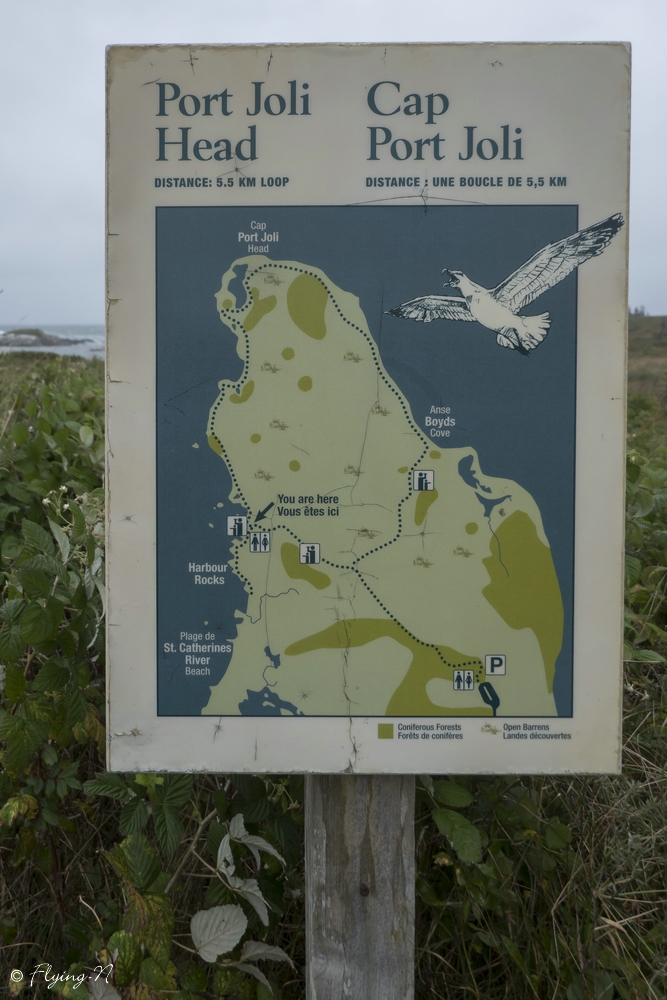 Erstes Ziel heute ist der Küstenableger des Kejimkujik National Parks, wo wir eine kurze Wanderung unternehmen, einmal ganz zum Südzipfel Port Joli Head. Das Wetter hat sich noch nicht wesentlich gebessert, trotzdem stehen am Parkplatz ein paar Autos.