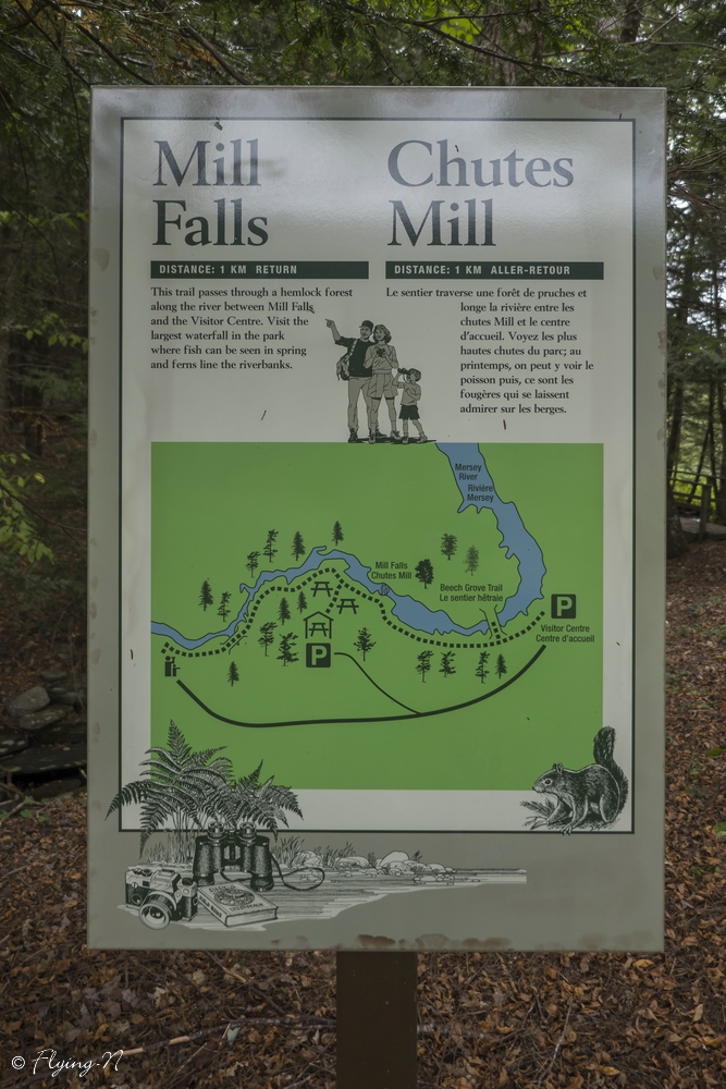 Also zurück zum Parkplatz, und Weiterfahrt zum eigentlichen Kejimkujik Park, wo wir gegen 15:30 ankommen. Wir schauen uns die Exponate im Visitor Center an und laufen eine Runde am Mersey River entlang zu den Mill Falls. Auch hier am Wegesrand überall Pilze. Von Laubfärbung ist hier übrigens in den letzten zwei Tagen so gut wie noch gar nichts zu sehen.