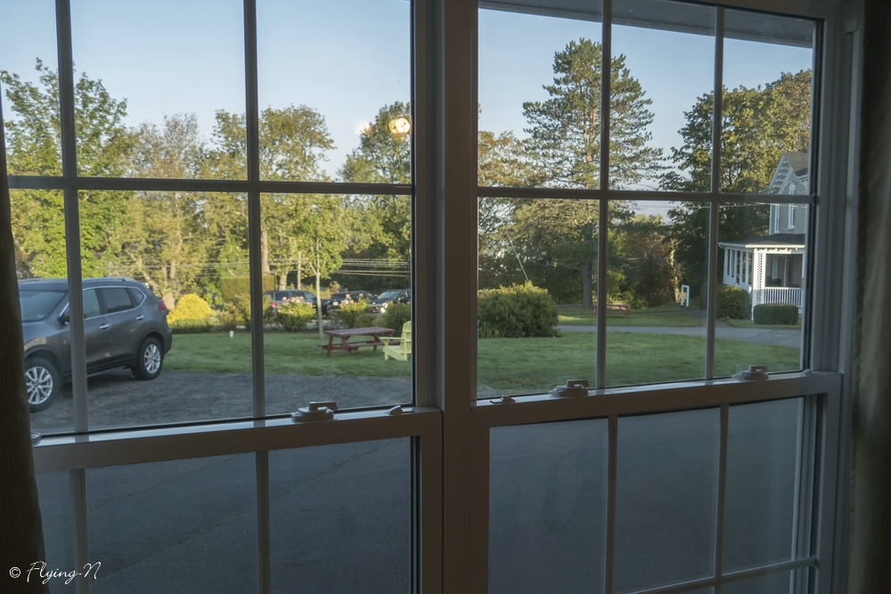 Kurz nach 16 Uhr sind wir wieder in Westport und beeilen uns, die zweite Fähre um 17 Uhr zu erwischen, und fahren bei Sonnenschein den ganzen Digby Neck entlang zurück. Das Nachtquartier ist in Grand Pré gebucht, da wir ja eigentlich bereits am frühen Nachmittag von der Wal-Tour zurückgekommen wären. Nun heißt es: Eilig ein paar Kilometer fressen, auf der gut ausgebauten und leeren Autobahn (101) trotz einbrechender Dunkelheit kein Problem. Als wir die Autobahn verlassen, wird es dann schon etwas schwieriger, da Beleuchtung und Beschilderung zu wünschen übrig lassen. Doch das Navi lotst uns sicher zum Evangeline Motel, was zumindest von außen einen ordentlichen Eindruck macht. Ein Restaurant o.ä. gibt es hier nicht in der Nähe, daher waren wir bereits in Digby bei McDo eingekehrt. Das Zimmer ist riesig mit zwei Betten, auch das Bad sehr geräumig, nicht schlecht.