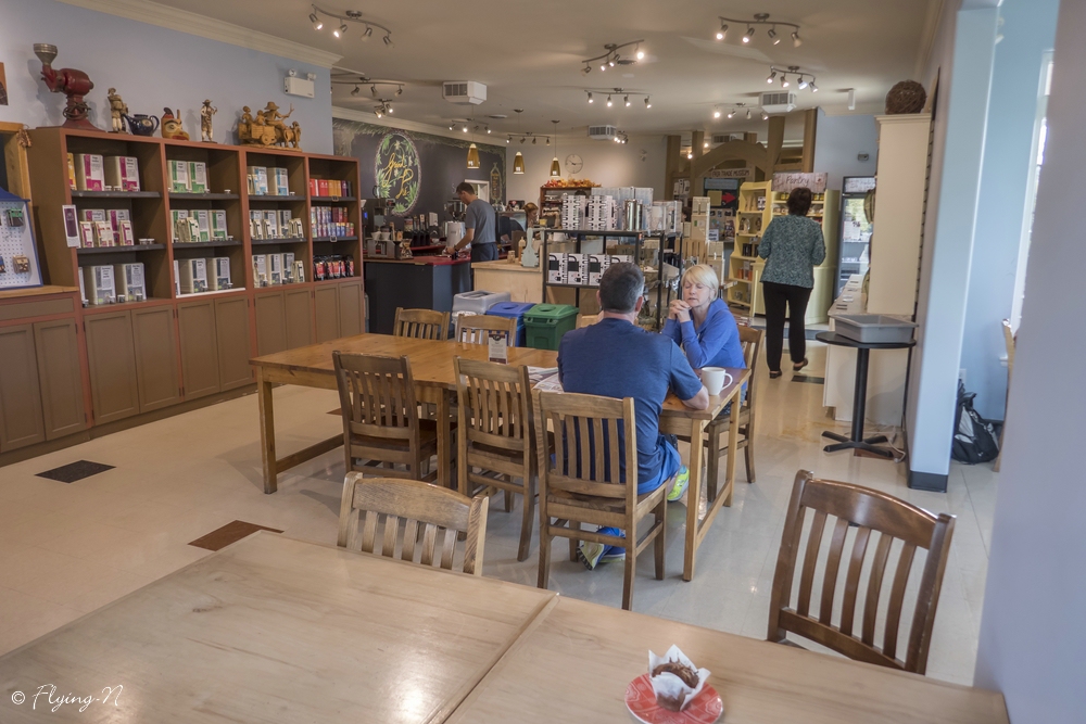 Gegen 10 Uhr treibt uns aber der Hunger in die Kaffee-Rösterei „Just Us“ zum Frühstück, alles fair und organic hier (auch sehr gemütlich – bis der erste Reisebus voll Touristen eintrifft…). Wir ziehen weiter, die Sonne ist da, T-Shirt und Sonnenbrille ist unser typischer Urlaubs-Look ab jetzt.