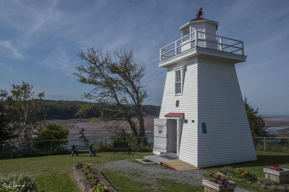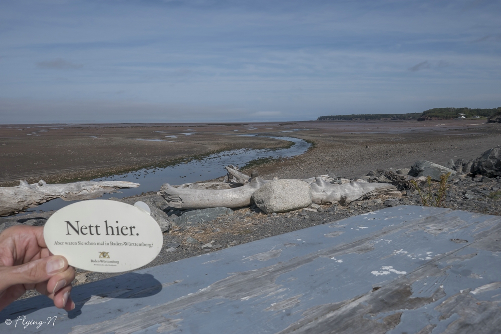 An der Bay of Fundy entlang fahren wir (auf der 215) zunächst zu einem weiteren Leuchtturm, dem Walton Lighthouse. Dieser ist außerdem begehbar als kleines Museum gestaltet und liegt hier ganz nett, eigentlich direkt am Meer… Aber da gerade Ebbe ist und hier bekanntlich die größten Tidenhübe der Welt zu beobachten sind, ist vom Wasser gerade nicht viel zu sehen!